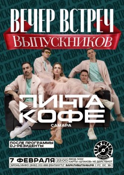 🔹Суббота- Кавер-группа Пинта Кофе (Самара) и программа от ведущих. После концерта Dj-резиденты.